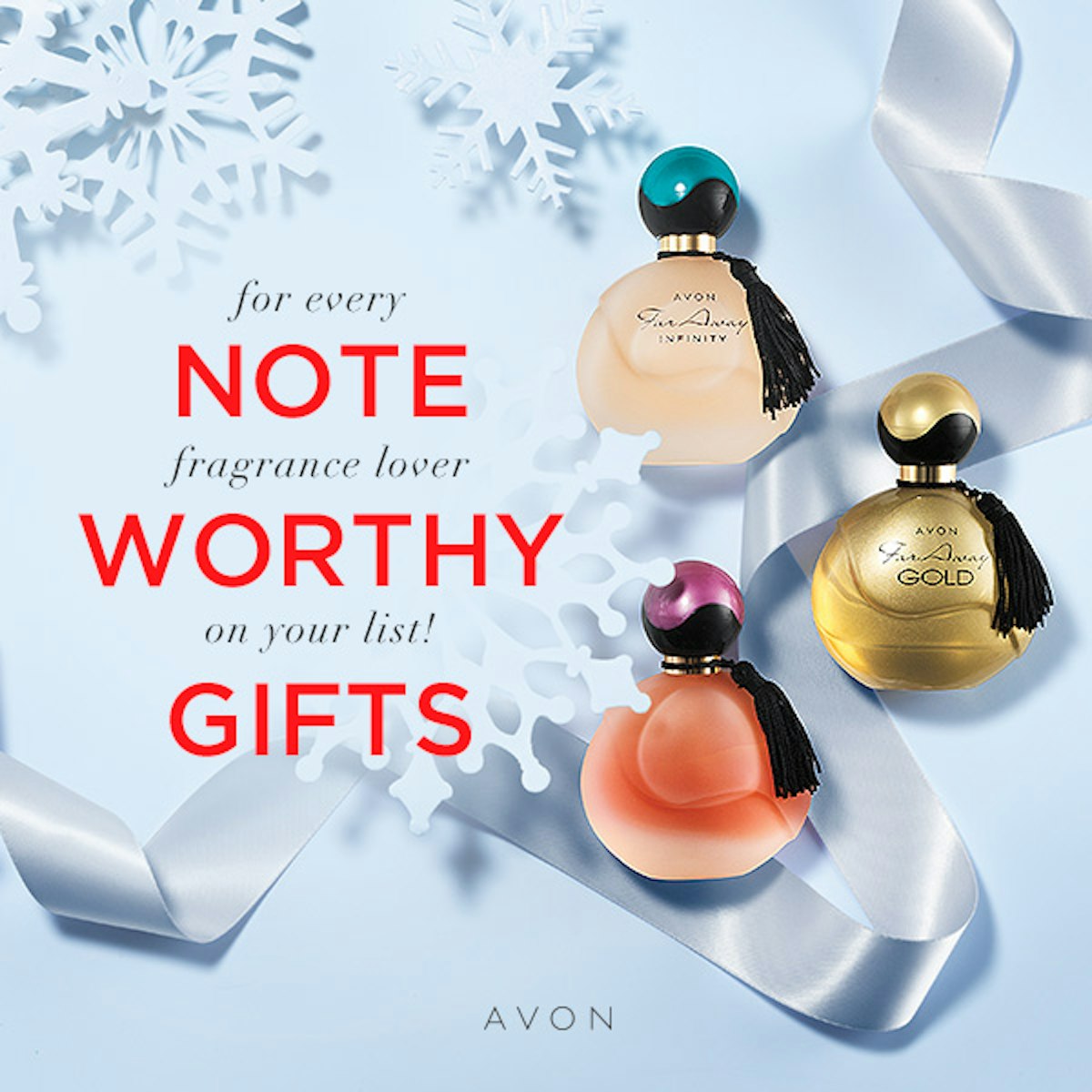 Iconic Avon Far Away Collectible Star Decanter ($7.99 each): A Limited Edition iconic collection holiday gift inspired by Avon’s rich heritage with collectible star decanter in your favorite Far Away scent that comes in a festive gift box! Available in Far Away, Far Away Gold and Far Away Infinity.
