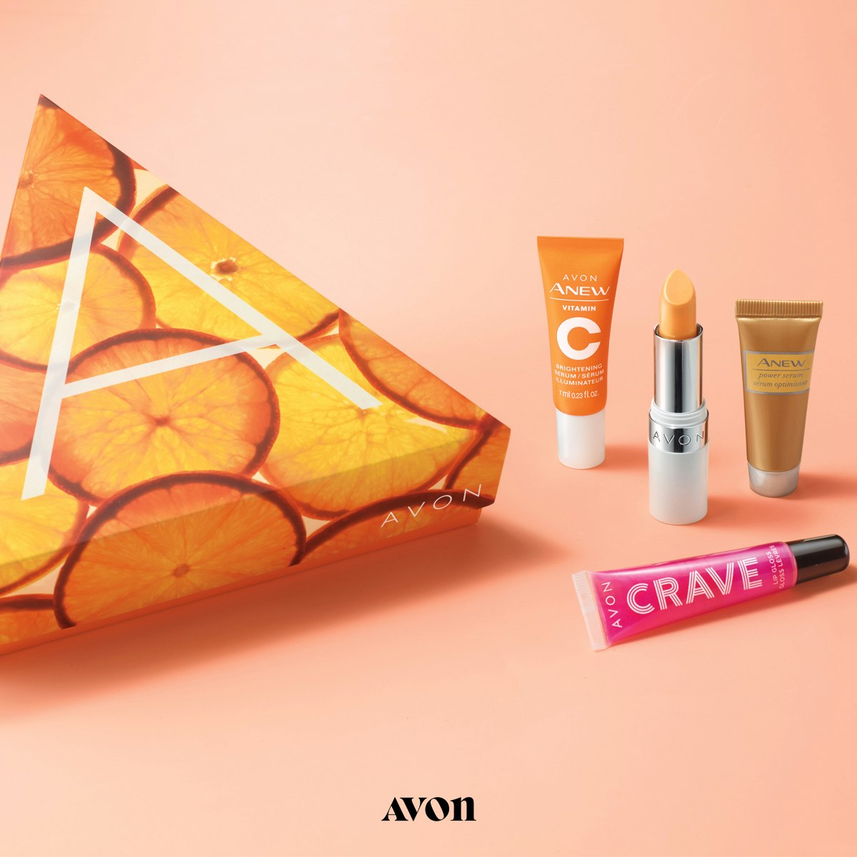 Glow Baby Glow Collection ($10 with any $40+ Campaign 14 Order): Whether you’re giving skin that extra power boost or rival-the-sun brightener, our summer-light mini serums take your glow on the go—and are TSA-friendly. Pop in your purse a little lip conditioner and fruity-flavored gloss. Now you’re good to glow. This $38 value Limited Edition boxed set includes Anew Power Serum Mini, Anew Vitamin C Antioxidant Lip Treatment, Anew Vitamin C Brightening Serum Mini and Avon Crave Lip Gloss in Citrus Sangria.