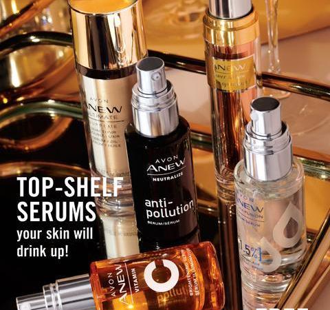 Description: Welcome to the Serum Bar… Help customers enjoy top shelf serums their skin will drink up! Share with customers the benefits they can enjoy with serums like Anew Vitamin C Brightening Serum, Anew Neutralize Anti-Pollution Serum and Anew Power Serum. Plus, with any purchase from the Campaign 4 What’s New or Brochure Serum Bar, you and your customers can receive a FREE Anew Clinical Eye Lift Pro Dual Eye System.