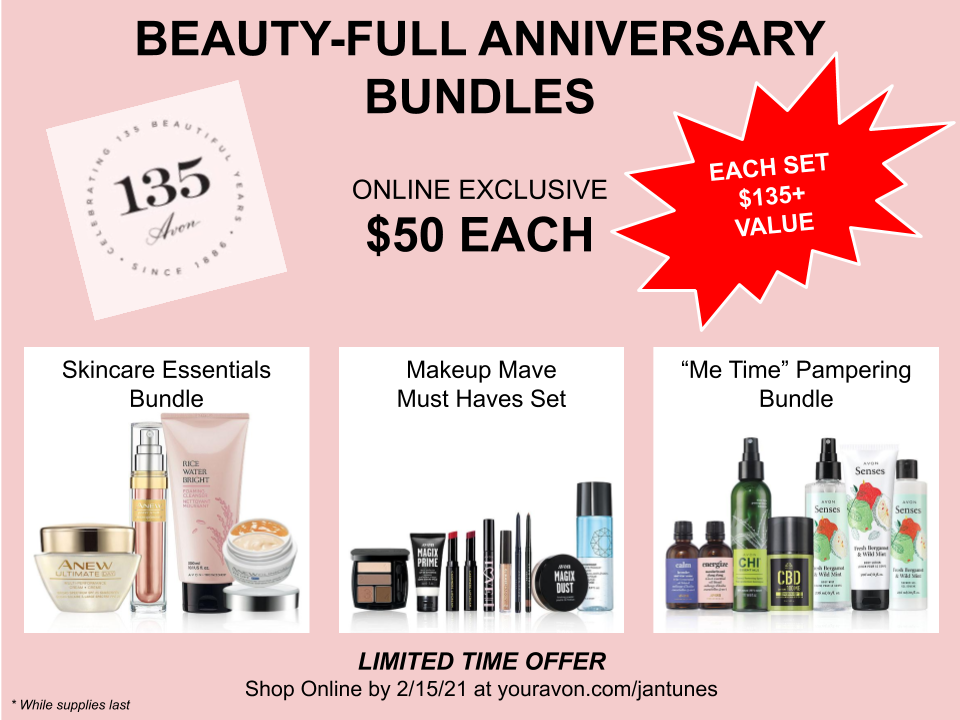 You can now shop Avon’s online catalog, sales flyers & special offers now until Monday February 15, 2021 at youravon.com/jantunes. In Campaign 5 curated digital catalog, you’ll find the perfect body care to help give you smooth, hydrated, beautiful skin from head to toe. Plus, through out Campaign 5, find deals, bundles & special offers in Magnifi-scents sales flyer & Avon’s 135th Anniversary beauty bundles.