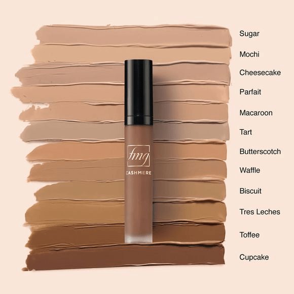 fmg Cashmere 24 Hour Concealer: Get cashmere-soft skin that looks as effortlessly beautiful as you do. This richly pigmented concealer provides 24 hours of full matte coverage. Formulated with antioxidant barley extract and vitamin E, it nourishes skin while giving it a flawless appearance. Available in 12 shades.