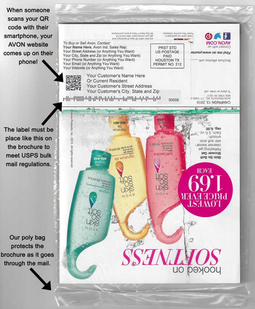 So what does a professional looking brochure look like? Well honestly, Avon does most of the work for us. They create beautiful brochures each campaign that provide not only images of the products but also models using the products as well. All you really need to do is put your information on it, whether you neatly write it in or you put a label on it. Which FYI, you can easily print out professional looking labels right at home on Avery through AvonPerks… you can even have the QR code to your online store printed on the label!