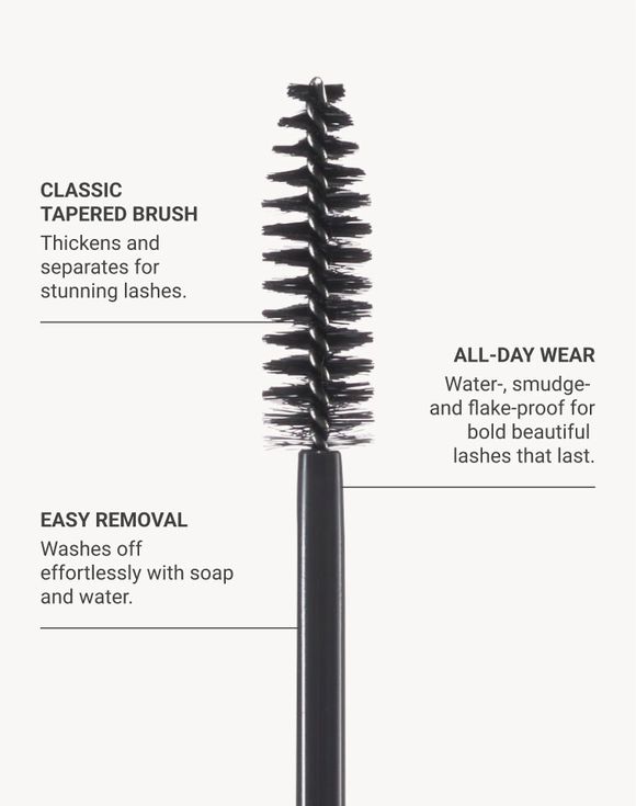 Meet the mascara that stays on all day and can weather any storm—and then washes off with just soap and water! Waterproof volumizing formula features unique emulsion technology that makes it a breeze to remove.